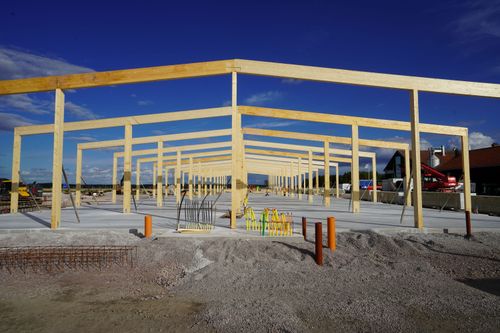 I slutet av april sattes spaden i backen för projektet i Uppsala. Arbetet med byggnationen har sedan start fortsatt med full fart. Nu är bottenplattan för hus 1 – den större byggnaden – färdiggjuten och hallbyggnationen är i full gång. Under vecka 34 går vi vidare med gjutningen av hus 2 (singellängan), där byggnationen av hallen planeras att starta veckan efter.